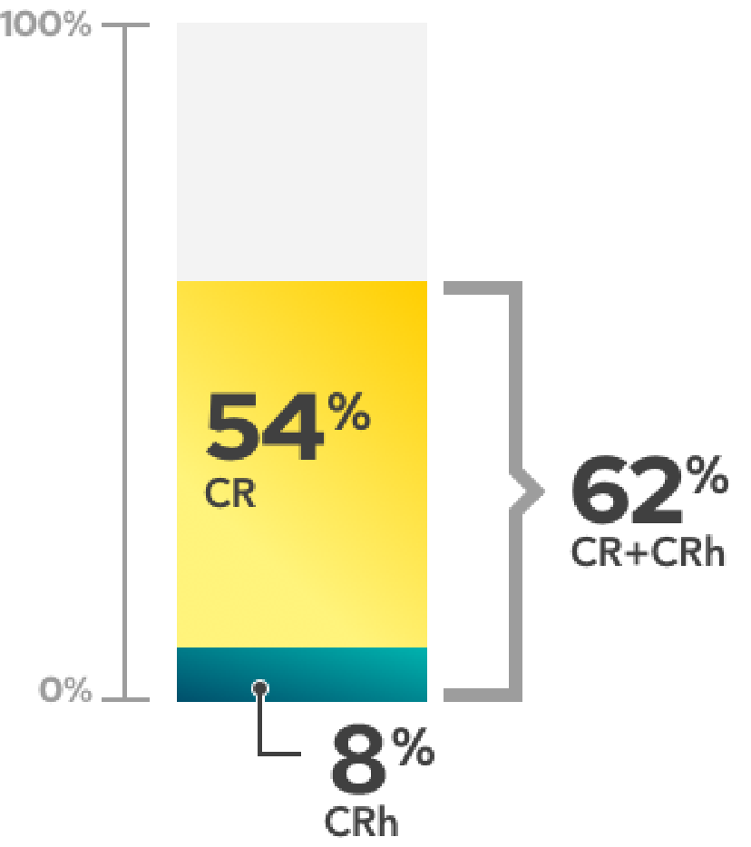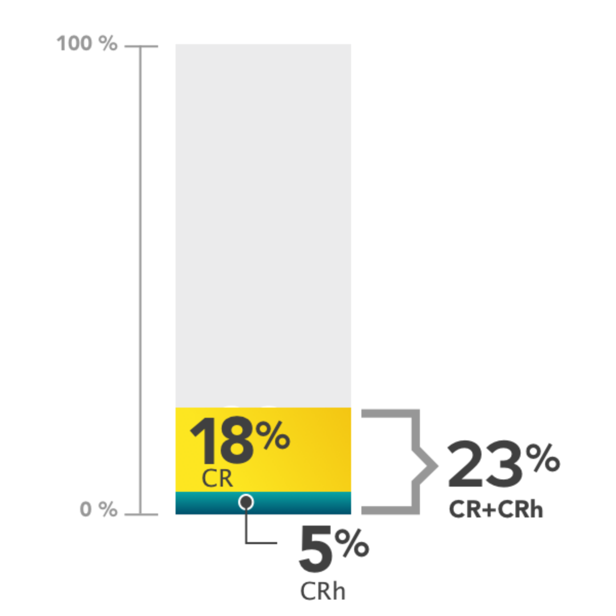 CRh, o remisión completa con recuperación hematológica parcial, significa que ha ocurrido alguna remisión. Cuando ocurre CRh, no se observan signos de cáncer, pero algunos recuentos sanguíneos no han retornado a niveles normales