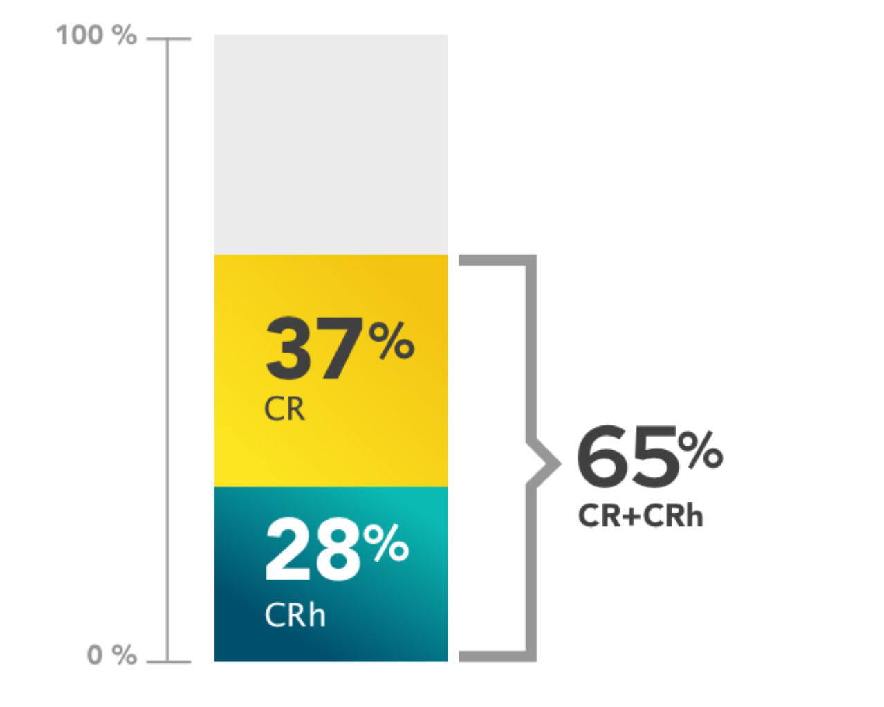 CRh, o remisión completa con recuperación hematológica parcial, significa que ha ocurrido alguna remisión. Cuando ocurre CRh, no se observan signos de cáncer, pero algunos recuentos sanguíneos no han retornado a niveles normales